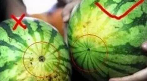 西瓜属葫芦科作物,所结出的果实称为瓠果,这是葫芦科瓜类特有的一种肉质果,瓠果一般都是从果柄开始向脐圈方向生长,脐圈越小,说明西瓜还没成熟,成熟的西瓜脐圈又大又圆并且会略微凹陷,这种西瓜生长时间充分,味道会更甜。