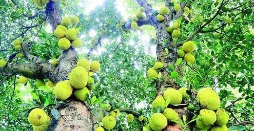 菠萝蜜的名字与佛教有一定的渊源,原产于印度,在热带潮湿地区广泛栽培。它自隋唐时从印度传入中国,借用梵文的发音被称为“频那挲”,宋代改称菠萝蜜,沿用至今。现在盛产于中国、印度、中南半岛、南洋群岛、孟加拉国和巴西等地。我国岭南的海南、广东、广西、云南东南部及福建、重庆南部有栽培。