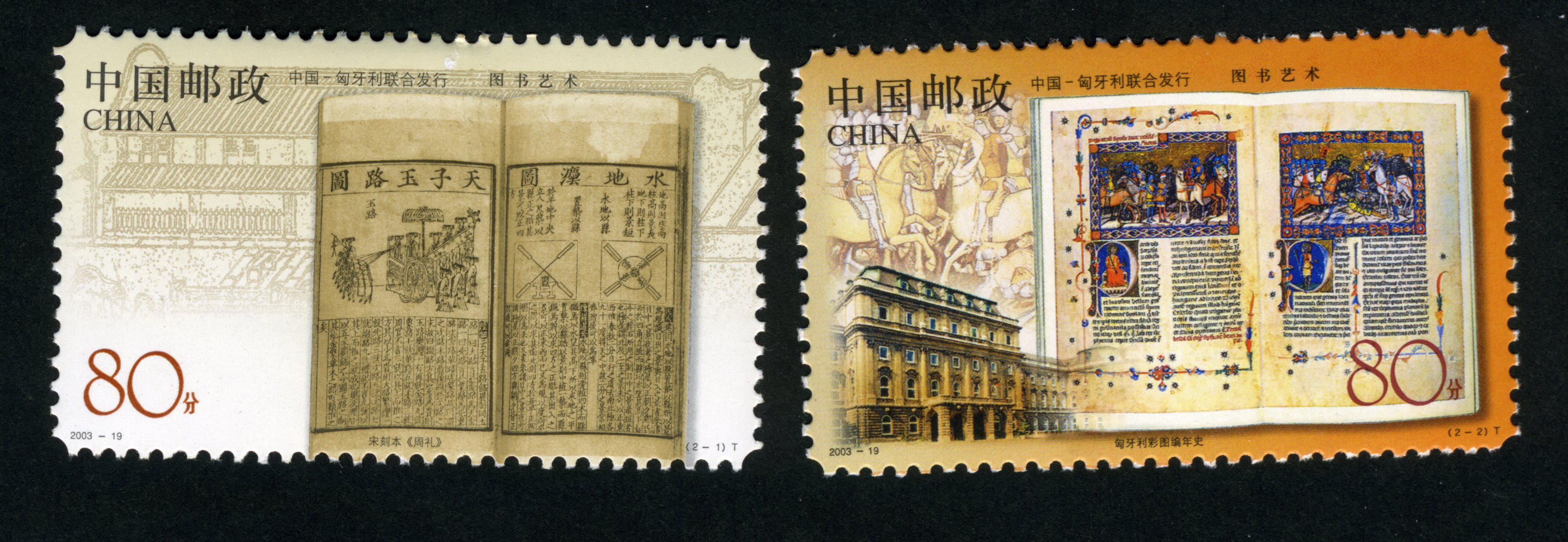 2003年9月30日,为纪念中国与匈牙利共同举办的中国图书艺术展活动,国家邮政局和匈牙利邮政联合发行了“图书艺术”特种邮票,全套2枚。邮票画面分别展现的是中、匈两国的古代书籍和图书馆。由吕敬人和匈牙利安多尔•安德拉什共同设计。