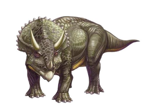 角龙是恐龙世界中出现最晚,但是种类最多的一个种群,它们出现在白垩纪晚期。角龙的头上长着形状奇特的角,所以刚发现它的化石时,考古学家将其误认为是远古时期的带角哺乳动物。最初发现的角龙便是头上一对角、鼻子上一只角的三角龙。