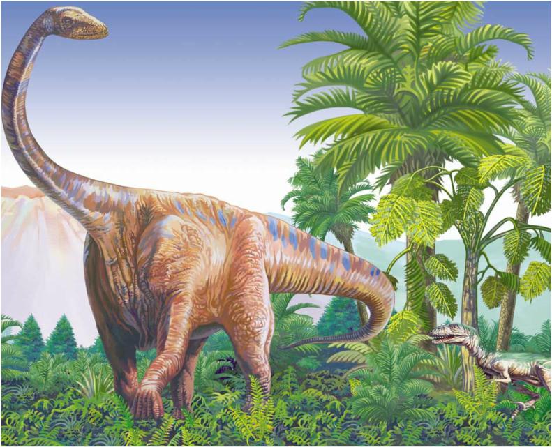 像雷龙这样的大型恐龙群居生活,从理论上来说非常合理。因为每只雷龙每天吃半吨食物,要想填饱自己的肚子,光靠一片草地是不行的,它们必须经常更换进食地点,寻找新的食物。一起行动的雷龙可以震慑那些贪婪的肉食恐龙,让它们知难而退。可以想象,在侏罗纪的广阔平原上,一群雷龙浩浩荡荡地前进,大地震颤,这是多么壮观的景象啊!