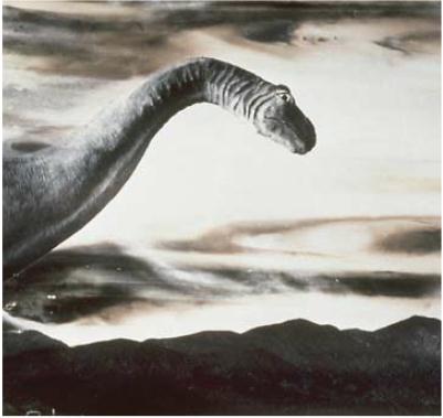 在怀俄明州发现的雷龙身长15米,它的头跟梁龙一样,小得可怜,重量还不如它的第四或第五块颈椎骨。雷龙的脖子很长,尾巴更长,而且从它的化石可以看出,雷龙的尾骨十分结实,也就是说,它有一条粗壮的尾巴。