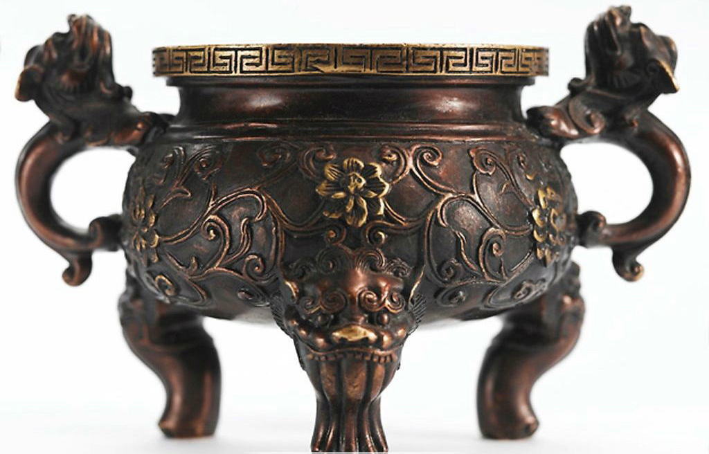 鼎,最早是陶制的,殷周以后开始用青铜制作。鼎腹一般呈圆形,下有三足,故有“三足鼎立”之说;鼎的上沿有两耳,可穿进棍棒抬举。可在鼎腹下面烧烤。鼎的大小因用途不同而差别较大。古代常将整个动物放在鼎中烹煮,可见其容积较大。夏禹时的九鼎,经殷代传至周朝,象征国家最高权力,被作为传国之宝,只有得到九鼎才能成为天子。
