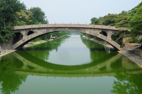 赵州桥又叫安济桥,坐落在河北省赵县城南五里的洨河上。赵县古时曾称作赵州,故名。赵州桥是隋朝石匠李春设计建造的,距今已有近1400年,是世界现存最古老最雄伟的石拱桥。赵州桥只用单孔石拱跨越洨河,石拱的跨度为37.7米,连南北桥堍(桥两头靠近平地处),总共长50.82米。采取这样巨型跨度,在当时是一个空前的创举。更为高超绝伦的是,在大石拱的两肩上各砌两个小石拱,从而改变了过去大拱圈上用沙石料填充的传统建筑型式,创造出世界上第一个 “敞肩拱”的新式桥型。这是一个了不起的科学发明。象赵州桥这样古老的大型敞肩石拱桥。在世界上相当长的时间里是独一无二的。在欧洲,公元14世纪时,法国泰克河上才出现类似的敝肩形的赛雷桥,比赵州桥晚了700多年,而且早在1809年这座桥就毁坏了。隋代著名石匠李春的杰出贡献在世界桥梁建筑史上永放光辉。