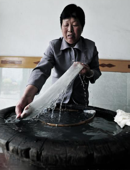 制丝绵除了他独特的制作技巧外,还有一个重要的条件,就是要有良好的水质。余杭出产的丝绵被称为“清水丝绵”,可见水质与丝绵的质量有着密切关系。