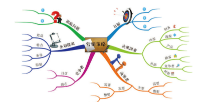 思维导图法强调运用想象力融入五官感受情境式的图像思考,透过树状结构,有层次的扩张营销所应思考方向的广度与深度。博赞与营销教学权威苡萨利(Richard Israel)指出,运用“营销心理矩阵”(Sales Mind Matrix)把大脑心智能力作为营销企划的检核,可以让营销过程兼具感性与理性,达到双赢的目标。我们应先发挥想象力,思考目标客户群的问题、需求与感受,来列出各种可能的营销目标,并决定其优先级,亦即营销定义中第一阶段“规划和执行有关概念、物品与服务的形成”。“形成”首重其目标,目标确定之后再进一步以“营销心理矩阵”讨论营销企划的其他各种因素。