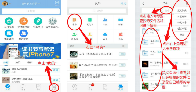 在书房中,您可以自由查阅您之前收藏的图书、期刊和报纸等资源,以及您自己创建的专题。您也可以在这里将所有精彩的内容与好友进行分享,从而实现社交的阅读。