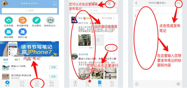 登录超星学习通APP后点击下方“笔记”,进入笔记页面。在这里您可以看到您的好友发布的动态,与您的好友进行互动。您也可以在这里点击右上角左侧的按钮进行笔记的编写,发布笔记。点击右上角右侧的按钮您可以查看您发布的所有笔记。如果您在浏览好友笔记动态时,觉得有兴趣可以点击“共享”,进入页面后您可以在下方进行评论或点赞,也可以点击右上角的按钮进行转发。