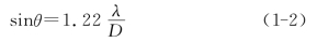 4.远场区 近场区以远的超声场,以某一角度向外扩散,近似球面波,该区内声强随传播距离的增加而减弱。远场扩散角θ与波长成正比,与声源直径成反比,公式为: