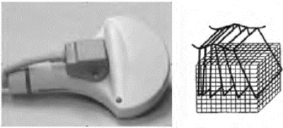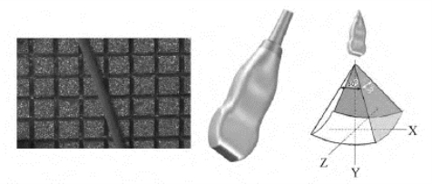 图3-10 矩阵三维探头(中国飞利浦公司赠图)和金字塔型容积扫描