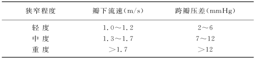 表13-4 频谱多普勒评估三尖瓣狭窄程度