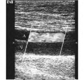 狭窄处血流束变细、变亮。闭塞处及近心端无血流信号,远心端血流变暗,小静脉难以显示。较远处可因侧支循环出现血流。