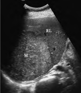 (2)肝脏增大,局部膨隆,边缘角变钝等。