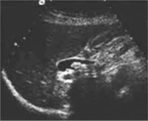 3.结石引起梗阻 若结石引起胆管完全梗阻,长期胆汁淤滞或合并感染,则受累的肝叶、肝段回声粗糙,可能肿大或硬化萎缩,使肝脏变形。