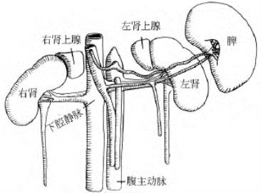 图28-1 肾上腺解剖解剖示意图