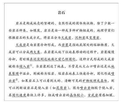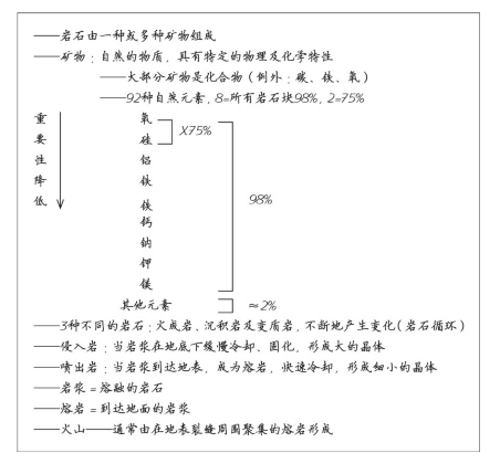 如果有一名尖子生读了《岩石》这篇文章并做了笔记,他的笔记应该跟下面这份差不多:尽可能用改述、总结及缩略等方法去记笔记。