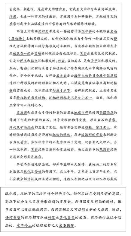 你不妨将上一页的标注与强尼的标注以及你自己的标注做一下对比,哪一个版本的标注能够更有效地突出《岩石》这篇文章中的重点信息?