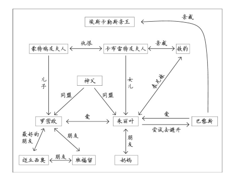 是的,将人物的关系和故事情节信息转换成图表并不是不可能。上面是我根据《罗密欧与朱丽叶》所绘制的“情节主线”。