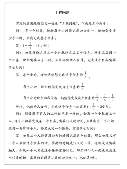 例:布伦达能够用3个小时完成某一个任务,而比尔需要6个小时。如果布伦达在工作一个小时之后,比尔加入与布伦达一起工作,他们要完成剩下的工作,还需要多长时间?
