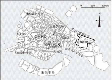 比政治中心稍早建立起来的,是位于里亚尔托和斯基亚沃尼堤岸(Riva degli Schiavoni)作为贸易用的港口。此外,国有造船厂(arsenale)也完成了建设。对于作为海洋国家正在崛起的威尼斯而言,造船无疑是其重要的支柱产业。伴随着这些变化,一种不同于以往教区制的居住形态开始产生。