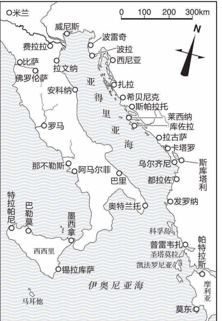 威尼斯位于亚得里亚海的最深处。威尼斯人要想与东方做生意,除了穿越亚得里亚海以外别无他径。也许有人会问,既然东岸海盗猖獗,为什么不避而远之,沿着西岸航行呢?