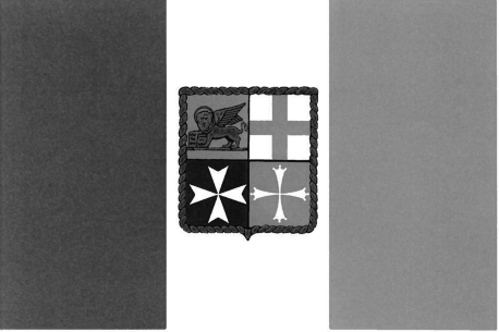 想来很多人都知道意大利的国旗是绿、白、红三色。不过那是陆地上的旗帜,海上的用旗稍有不同,商船用旗在国旗的基础上,中间白色的部分多出4个纹章,用金色的绳索框起。军舰旗在纹章上多了一个王冠,基本图案与商船用旗相同。