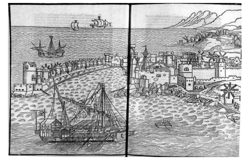 可是,就在我们的船绕开罗德岛往西移动时,遇上了从罗德岛出发,带着最新情报开往塞浦路斯岛的威尼斯军舰。对方确认了我们船上飘着的威尼斯朝圣专用船的旗帜之后,迅速扬帆划桨向我们靠近。他们告知了最新战况,建议我们停靠罗德岛。