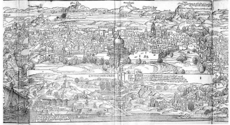 通过画匠们的笔端,15世纪末期的威尼斯街景、朝圣专用船“孔塔里纳”号的模样,波雷奇、扎拉、拉古萨、莫东、克里特岛的干地亚、罗德岛、塞浦路斯岛等朝圣船停靠的港口城市,以及上岸后的雅法、耶路撒冷的街道,还有圣墓教堂等,栩栩如生地展现在我们的眼前。也许正是因为德意志人的这种追求,才促成了20世纪摄影产业的发达吧。当然,这只是我小小的异想天开而已。