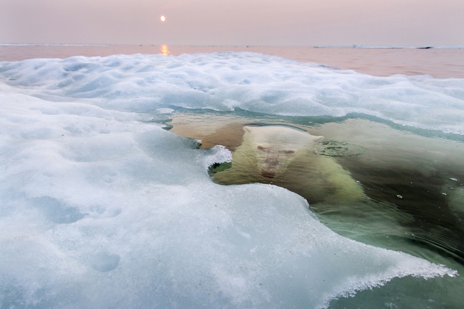 Paul Souders的这张“The Ice Bear”是自然类别的第一名,同时亦是今届比赛的总冠军,摄于加拿大中东部的哈德逊湾。一只北极熊潜在水里看向冰面,远处背景则是夕阳西下,这千载难逢的画面怪异而美丽,但同时亦让人不禁担忧,放眼望去冰层已融化得所剩无几,这样下去,北极熊该如何生存?