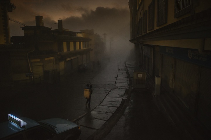地方类别的第一名是摄影师Adam Tan 2012年的作品“Long Road to Daybreak”,摄于中国的一个即将进行翻新改造的旧城区,画面中,一个女性正用篮子背着小孩穿过浓雾去上班