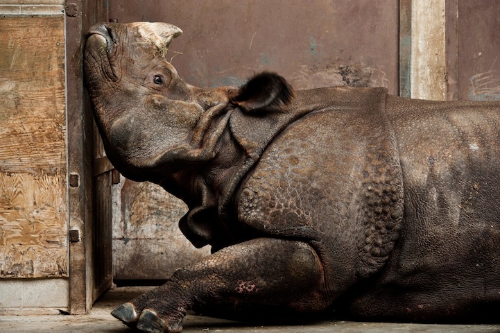 5,作品来自摄影师Stephen De Lisle。这只印度犀牛被困在多伦多的动物园里,寒冬来袭,它一副郁闷的样子,不知道是不是想家了呢?