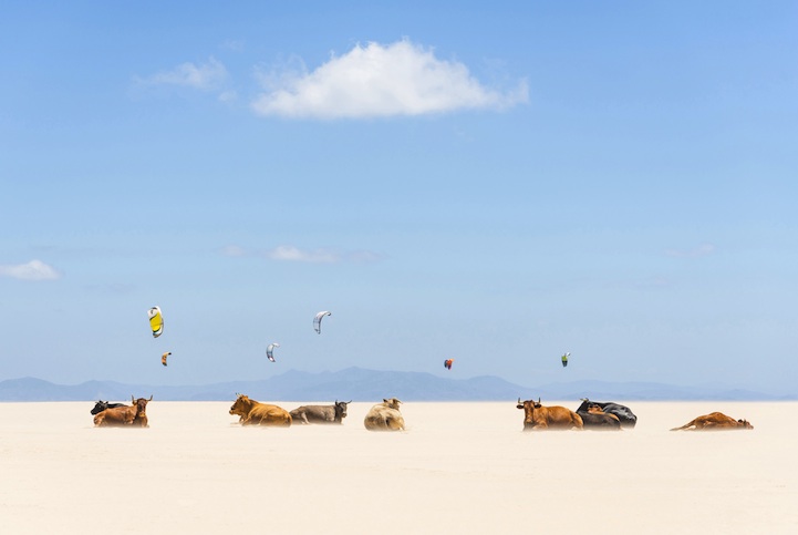 7,有趣的一幕来自摄影师Andrew Lever。当他在高速公路上飞驰之际,忽然瞄到远处有一群牛正在海滩晒太阳,于是他立刻下车顶着35度酷暑走向牛群,然后捕捉下这个画面。