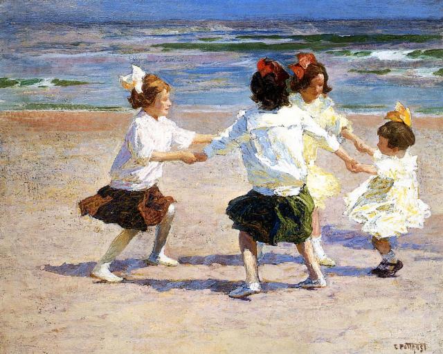 无限的天穹静止的临于头上,不息的海水在足下汹涌。孩子们会集在无边无际的世界的海边,叫着,跳着。