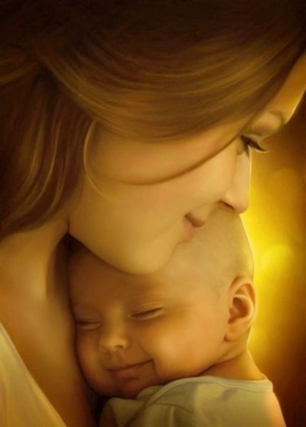 He loves to rest his head on mother's bosom, and cannot ever bear to lose sight of her.