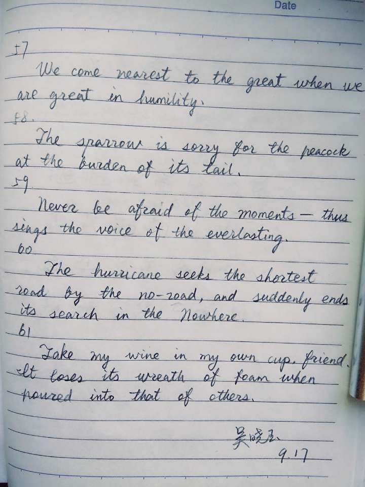 《飞鸟集》52-61抄写