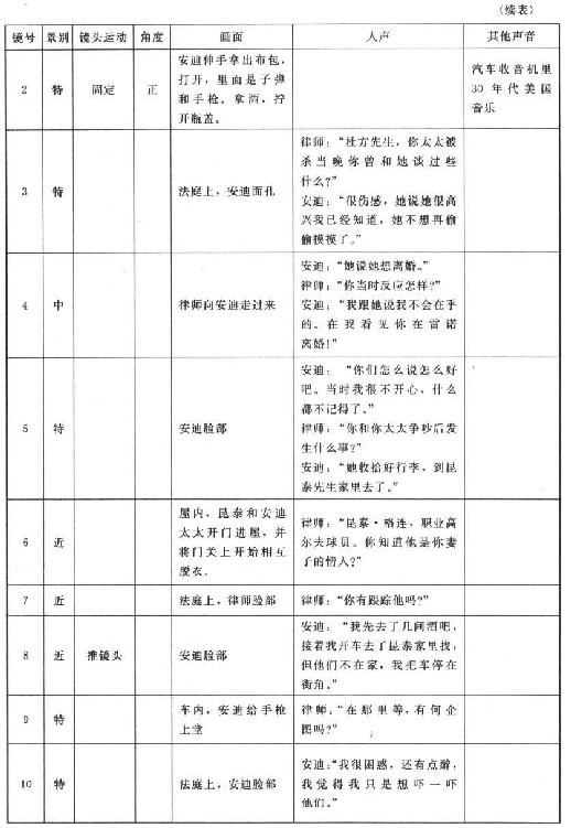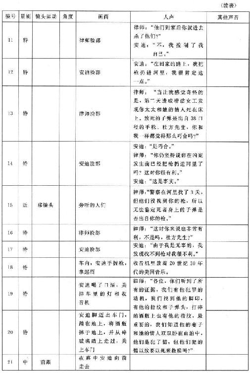 下面我们来看一下由影片《肖申克的救赎》拆分出来的部分分镜头剧本(见表2-3所示)。