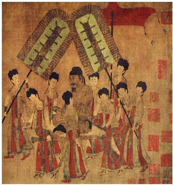 阎立本《步辇图》(局部) 绢本设色,纵38.5厘米,横129厘米 北京故宫博物院藏