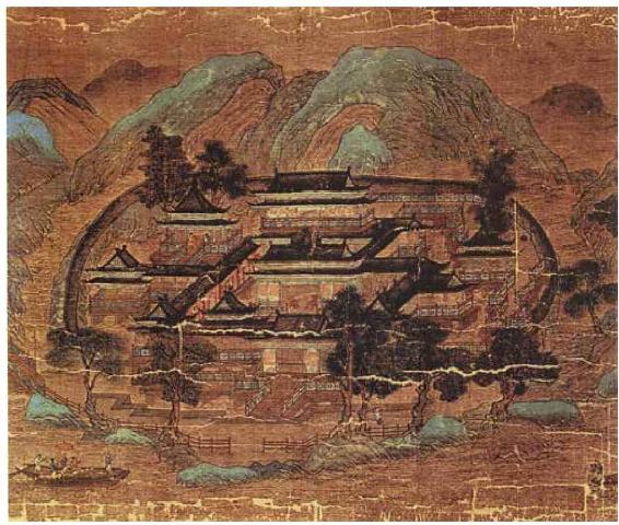 (传)王维《辋川图》(局部) 绢本设色日本圣福寺藏