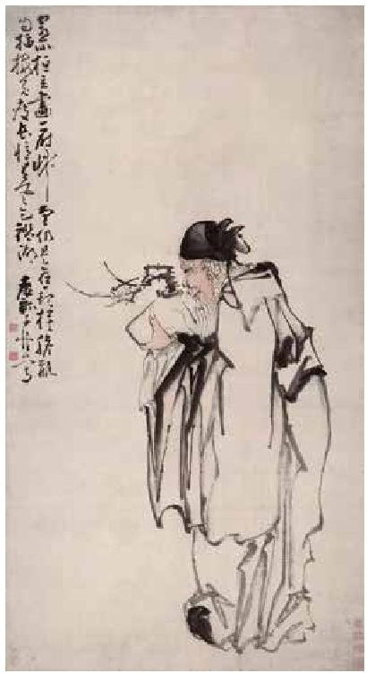 黄慎《捧梅图》 纸本设色,纵124厘米,横65厘米 辽宁省博物馆藏