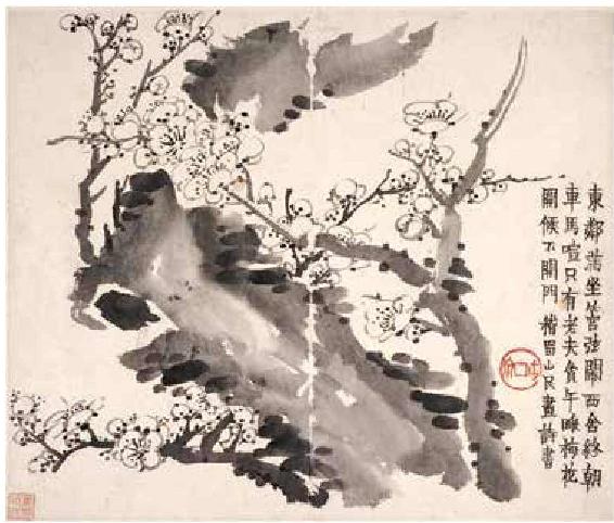 金农《梅花图》 纸本水墨设色,纵25.4厘米,横29.8厘米 美国纽约大都会博物馆藏