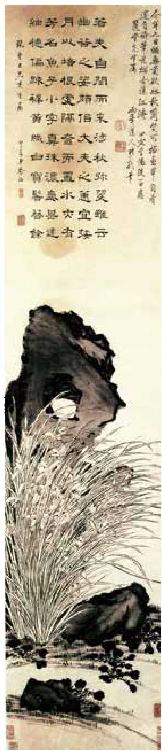 罗聘《秋兰文石图》 纸本墨笔,纵149厘米,横32.2厘米 南京博物院藏