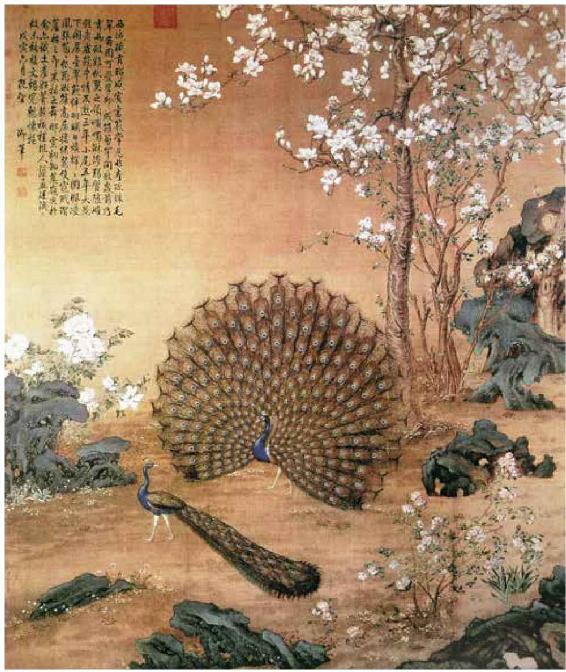 郎世宁《孔雀开屏图》 绢本设色,纵328厘米,横282厘米 台北“故宫博物院”藏