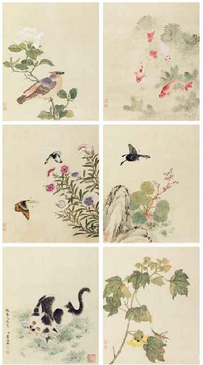 清朝之花鸟流派甚多,或承前代之风,或自出新意,较明代更多特异之点。大概乾隆以前多守古法,乾隆以后渐多变态,正如山水画亦以乾隆为一分水界也。如张雍敬、曹源宏、迟煓、胡毓奇等,皆依黄氏钩染之古法;孙克宏、孙杕、虞沅、赵之璧、张若霭等,继绍明代周之冕钩花点叶体。雍正之际,沈南苹亦以此法写生,得宋元遗意。而祖述白阳派者,蒋深、顾卓、闺秀李因等。清朝最为此科之代表者,为王武、恽寿平、蒋廷锡三家,介于徐黄、周陈之间而为有特长。