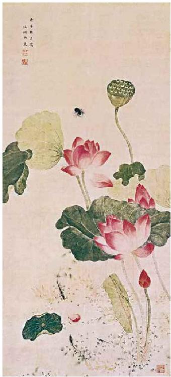 吴应贞《荷花图》 纸本设色,纵130厘米,横58.5厘米 北京故宫博物院藏