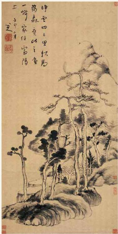 石溪上人,师法元之王蒙,亦可与四王相参究,惟不似四王之工整,故虽宗派少异,而殊有蝉蜕尘埃之致。