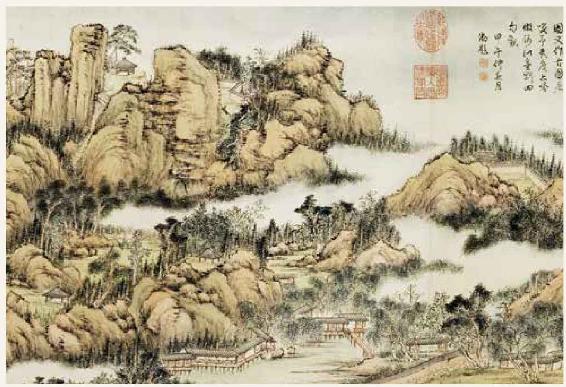 然则自康熙以及乾隆,王派又以石谷、麓台二派为最盛。即至今日,凡工山水者,率二派之支裔也。惟学者既众,流弊遂滋。其初麓台承宗烟客,其法得自元代四家,邱壑崇峻,局势浓密,以其笔致深远,故阴阳远近,疏密浓淡,皆有迹可寻,于平面中见立体之致,兴西洋之注意光线者,殆异曲而同工。及其末流,则专事堆砌,崖壁林木,悉为扁平,徒有形式而无笔法气韵。斯麓台派之流弊也。至于石谷之画,有合西人透视之法,故于山之来脉、水之渊源、树之远近、屋之方向、道路之通塞、人物之往来,如身历其境,匠心独运,秀韵天成。西亭学石谷,貌似可以乱真,究差石谷一等。其余不足论矣。学石谷画而佳者,仅号秀润。秀润之弊,软弱随之,致招搔首弄姿以取悦庸众之诮,超旷拔俗之风替矣。此则石谷之流弊也。