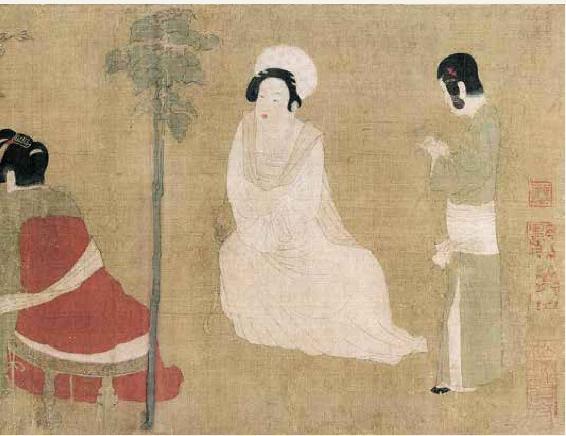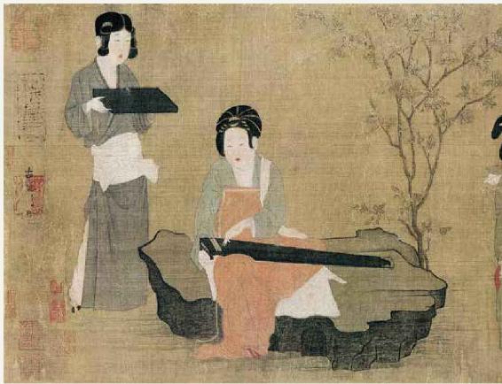 周昉《调琴啜茗图》(局部) 绢本设色,纵28厘米,横75.3厘米 美国纳尔逊美术馆藏