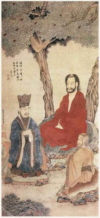 丁云鹏《三教图》 纸本设色,纵115.6厘米,横55.7厘米 北京故宫博物院藏