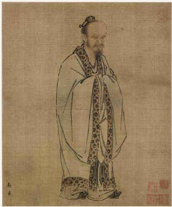 马远《孔子像》 绢本设色,纵27.7厘米,横23.2厘米 北京故宫博物院藏