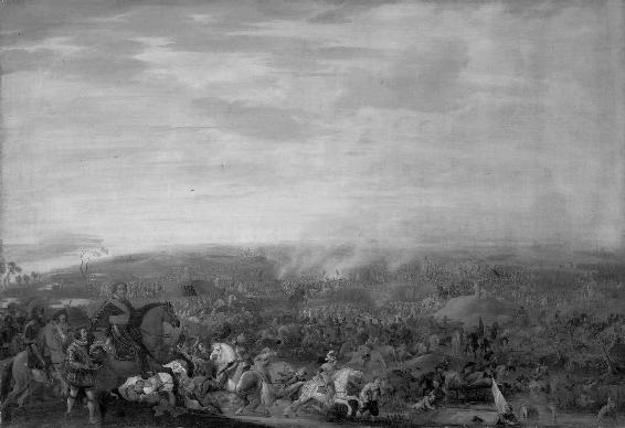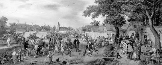 莫里斯和腓特烈·亨利(Frederick Henry)在维勒肯堡(Valkenburg)的良马市集上。亨利是莫里斯的同父异母兄弟,和莫里斯一样,是一个有战略眼光的军事家,擅长攻坚作战